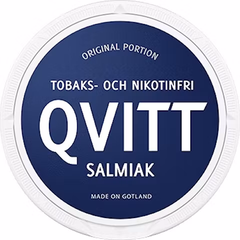 Qvitt Salmiak är ett högkvalitativt nikotinfritt snus som har en saltig smak av salmiak och undertoner av anis. Portionerna är välpackade och känns väldigt autentiska under läppen.