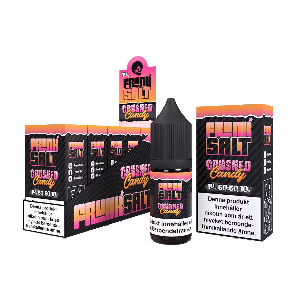 Frunk Salt | Crushed Candy | 10ml E-Juice | 14mg Saltnikotin 89 kr Välj antal 1-pack 5-pack 10-pack I lager. Lägg i korgen Dela Produktbeskrivning Recensioner Med smak av godis. Samma smak som i Frunk Bar Mesh engångsvape.